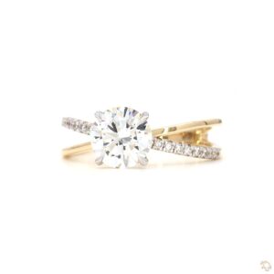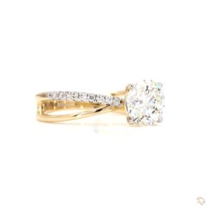 Round diamond ring with asymmetrical pavé split band (DA602539-02)