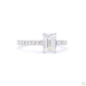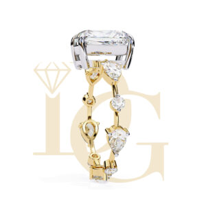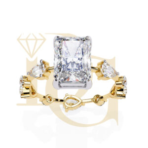 Radiant diamond = 2.80 CT Side diamonds = 92 CT Total diamond weight = 3.72 CT Total diamonds = 10 Pcs